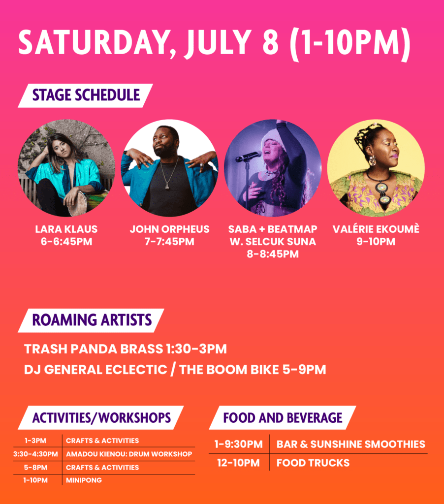 Get ready for a 3-day line-up of music on stage and throughout the park, hands-on workshops for all ages, delicious food and drinks, and a creative kids’ program.