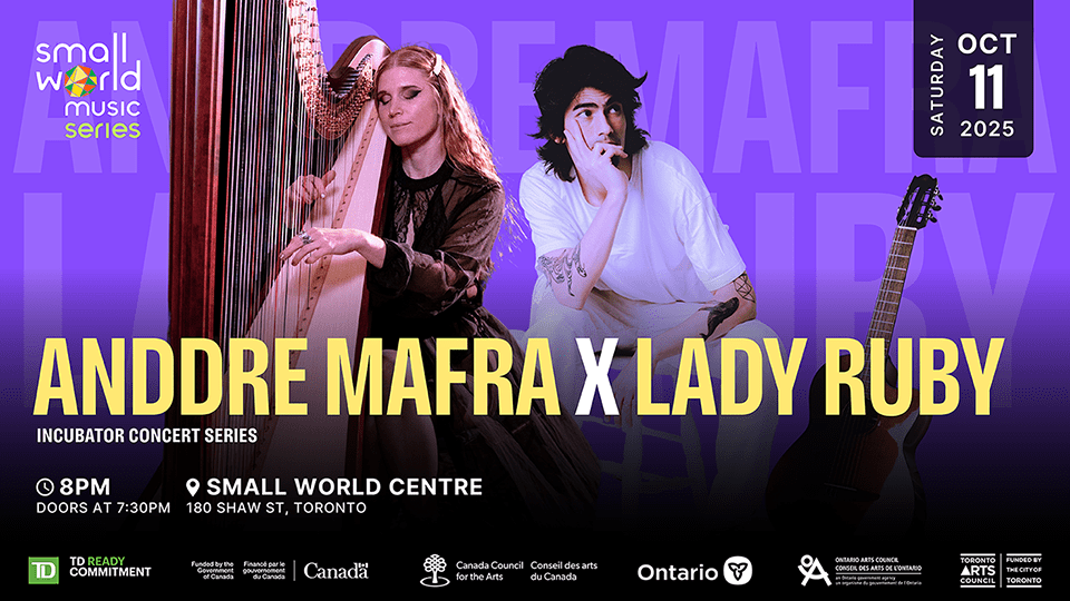 The 2025 Small World Music Series is sponsored by TD Bank Group through the TD Ready Commitment and funded by the Government of Canada, Canada Council for the Arts, Ontario Arts Council, and the City of Toronto through the Toronto Arts Council.