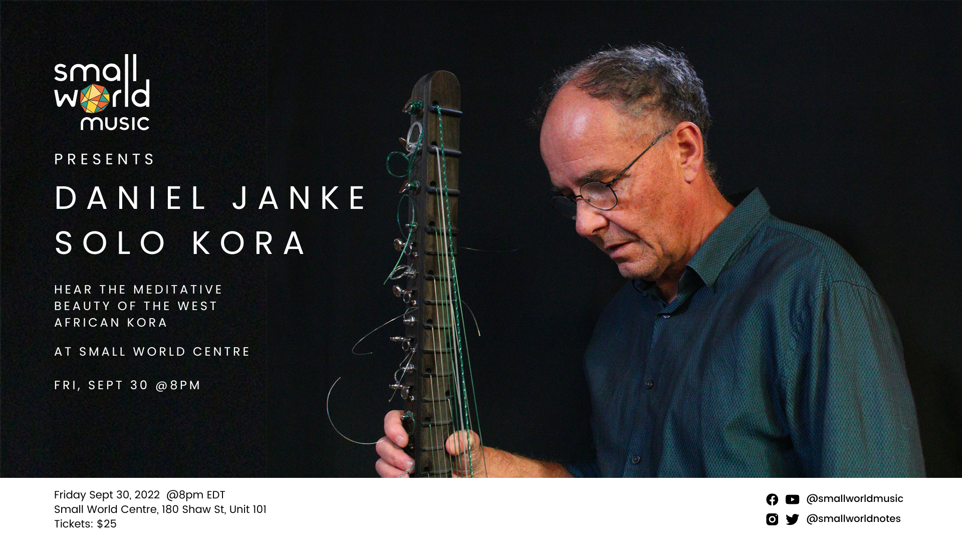 Small World celebrates the meditative beauty of the west African kora in a rare solo recital with Daniel Janke.