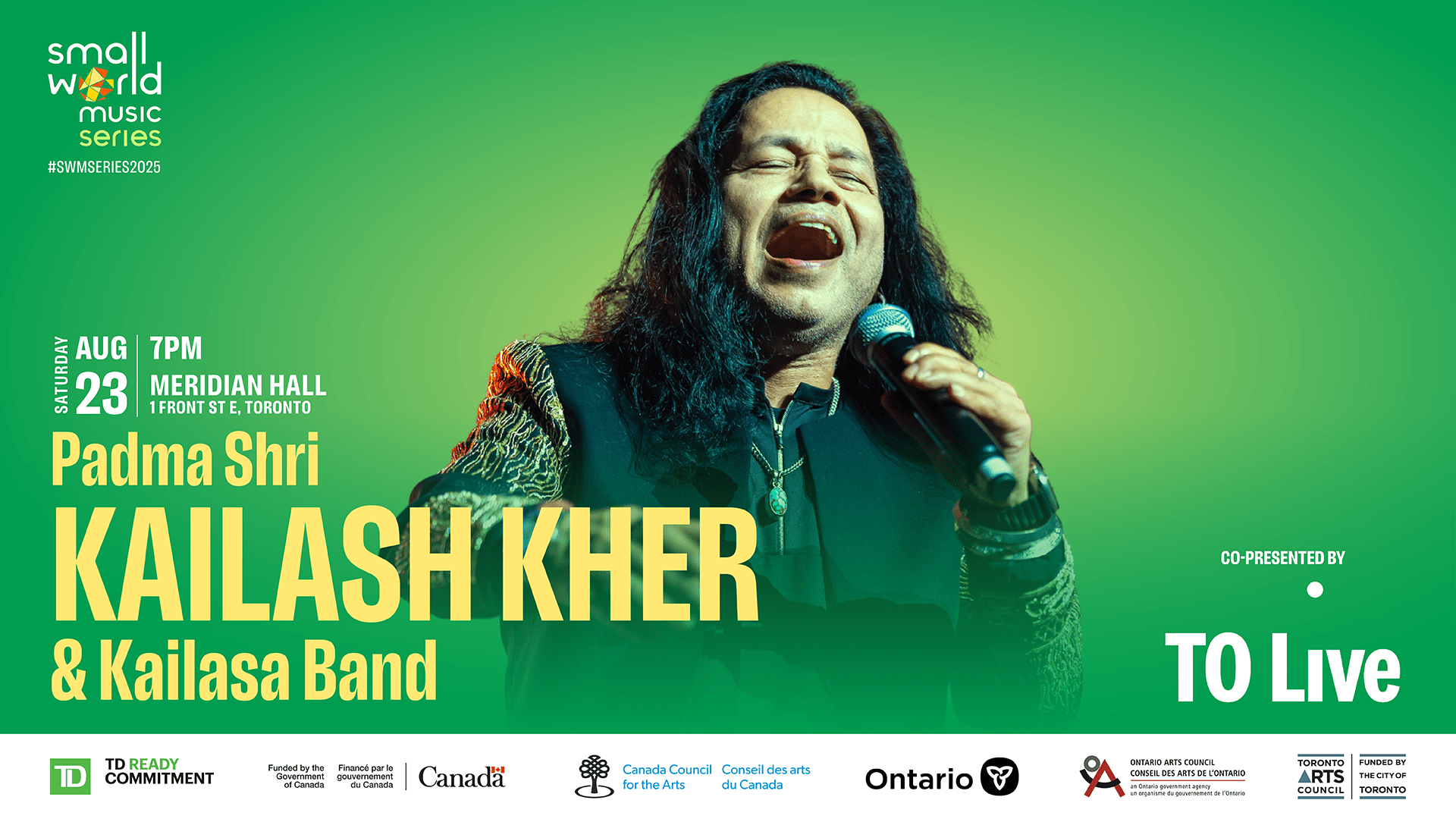 The 2025 Small World Music Series is sponsored by TD Bank Group through the TD Ready Commitment and funded by the Government of Canada, Canada Council for the Arts, Ontario Arts Council, and the City of Toronto through the Toronto Arts Council.