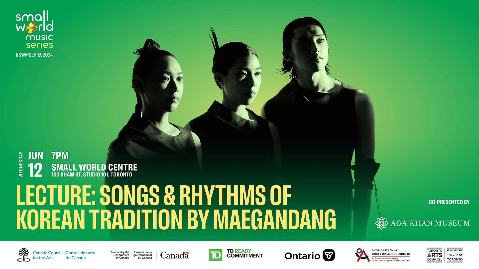 The 2024 Small World Music Series is sponsored by TD Bank Group through the TD Ready Commitment and funded by the Government of Canada, Canada Council for the Arts, Ontario Arts Council, and the City of Toronto through the Toronto Arts Council.