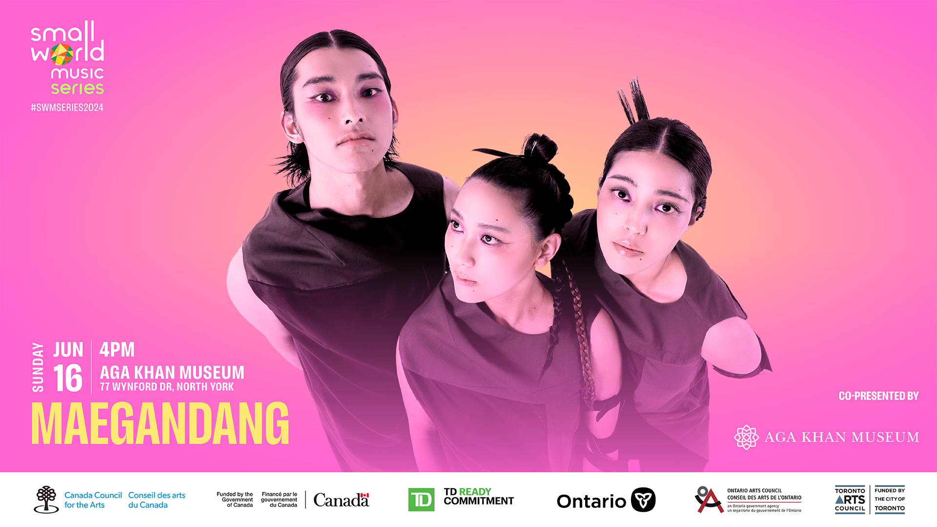 The 2024 Small World Music Series is sponsored by TD Bank Group through the TD Ready Commitment and funded by the Government of Canada, Canada Council for the Arts, Ontario Arts Council, and the City of Toronto through the Toronto Arts Council.