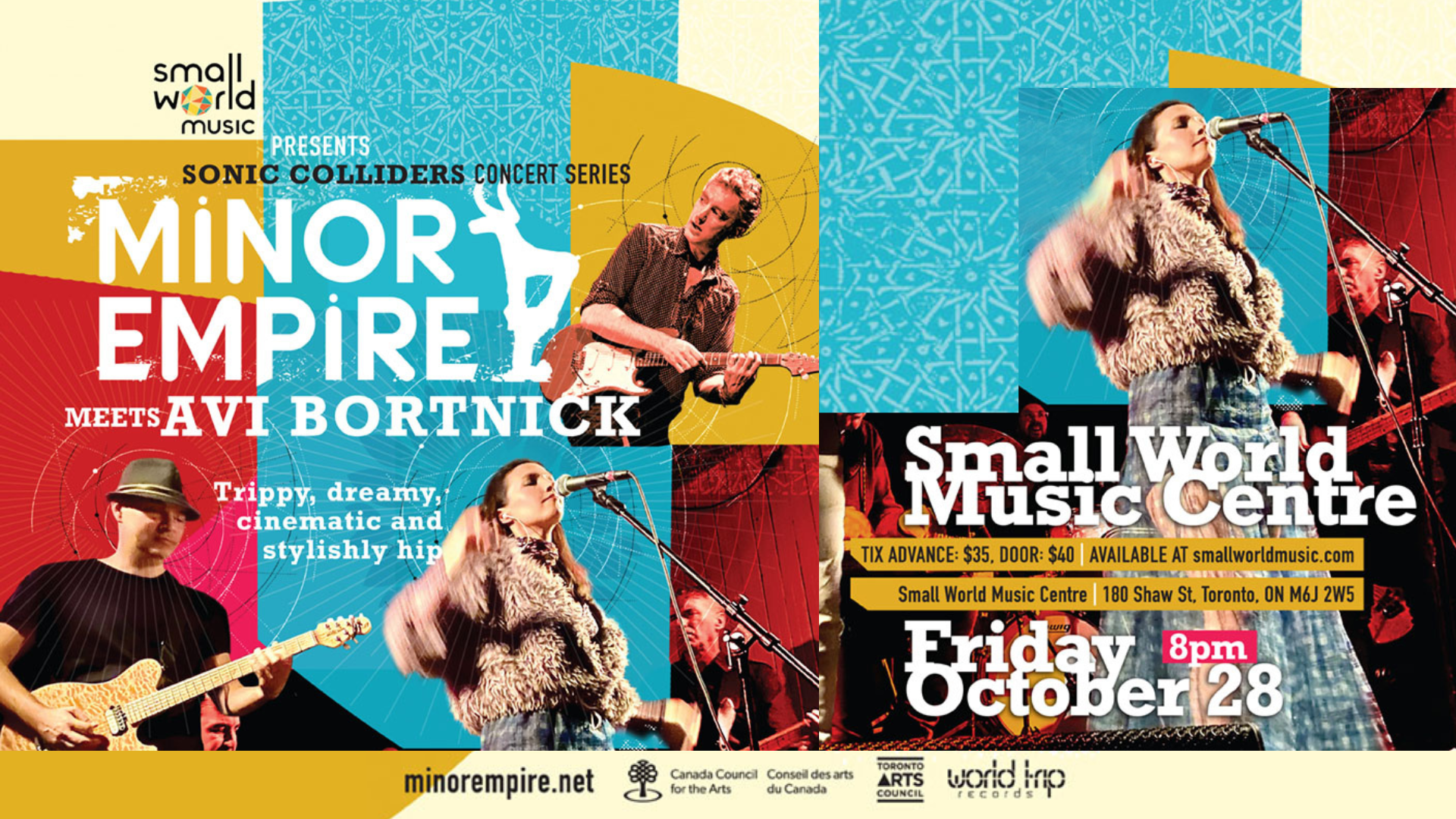 Our friends and Toronto’s award winning group Minor Empire are planning a busy year of new releases and unique collaborative concert performances under the banner Sonic Colliders. The series will see the band performing with world renowned virtuosos like Avi Bortnik and Eivind Aarset as they explore and expand on the full spectrum of their vaunted outer-national Anatolian inspired soundscapes.
