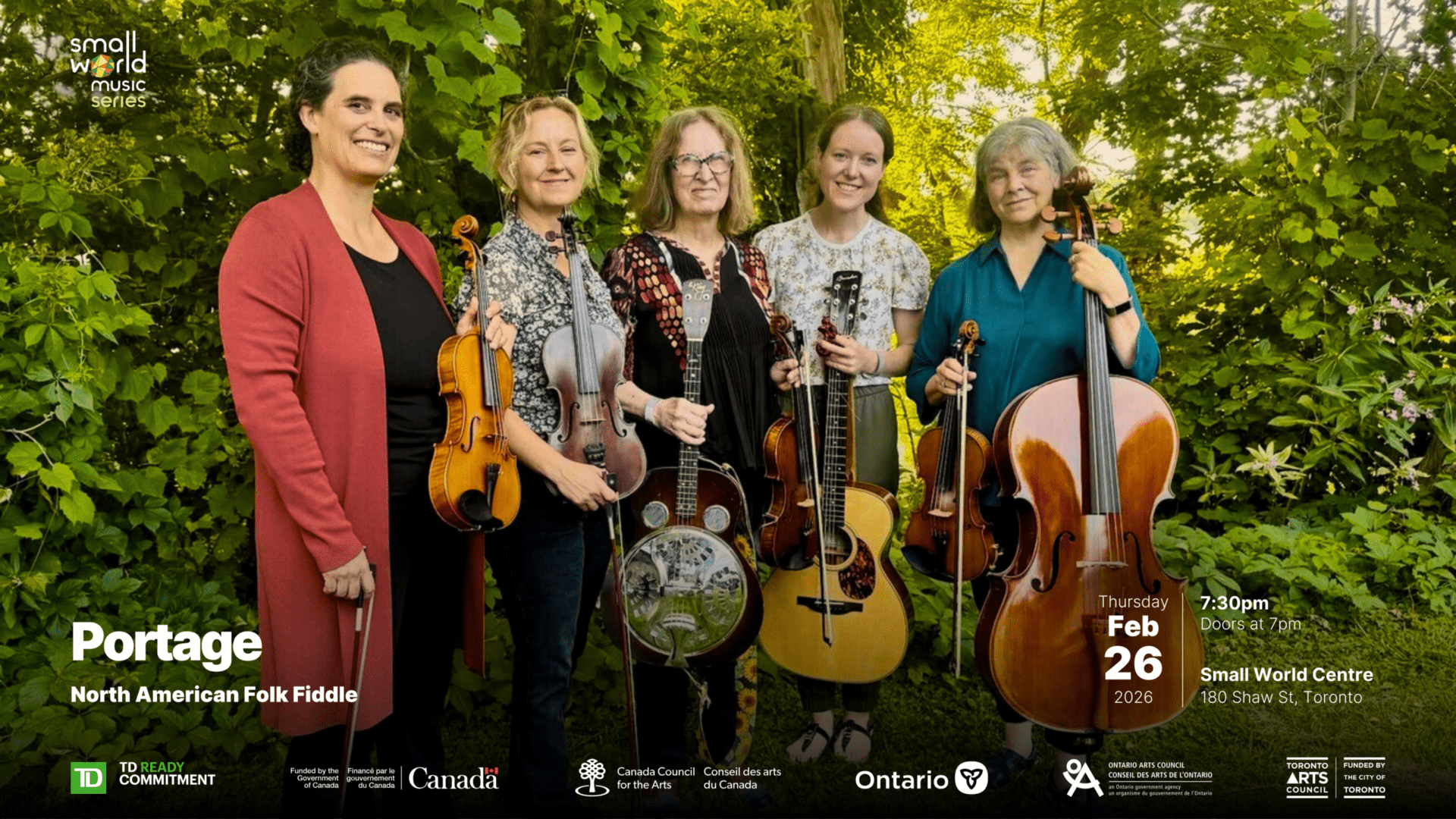 The 2026 Small World Music Series is sponsored by TD Bank Group through the TD Ready Commitment and funded by the Government of Canada, Canada Council for the Arts, Ontario Arts Council, and the City of Toronto through the Toronto Arts Council.