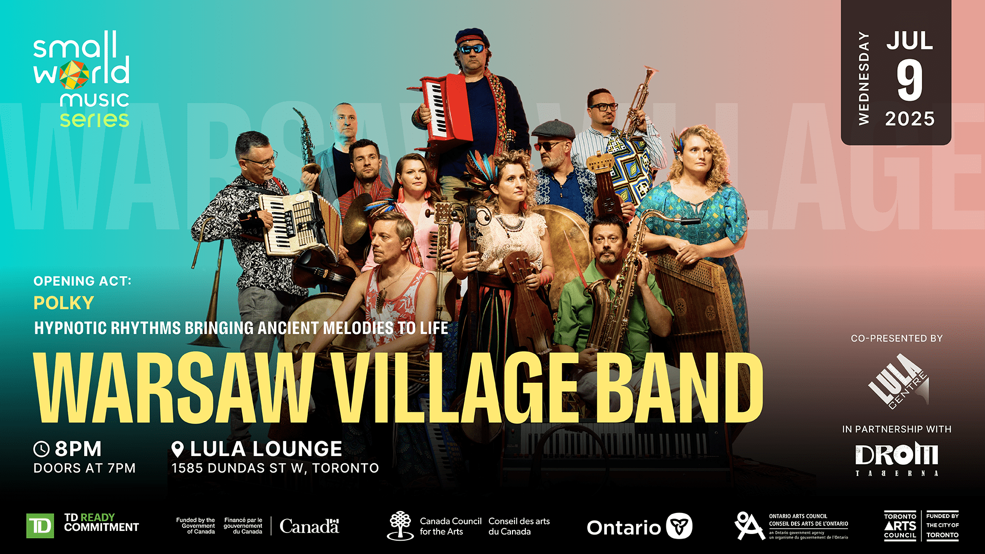 The 2025 Small World Music Series is sponsored by TD Bank Group through the TD Ready Commitment and funded by the Government of Canada, Canada Council for the Arts, Ontario Arts Council, and the City of Toronto through the Toronto Arts Council.
